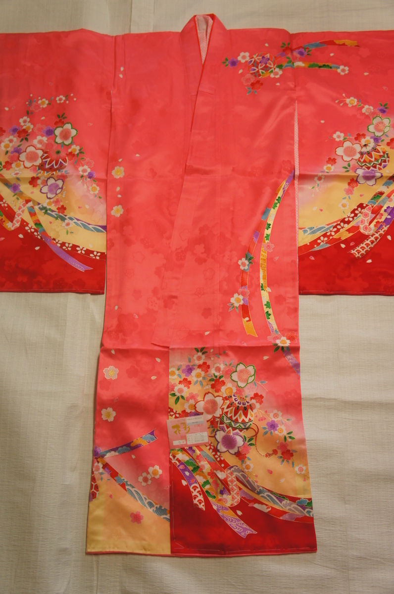 > 特選紅梅色毬に花模様未着用長襦袢重ね付[C12793]