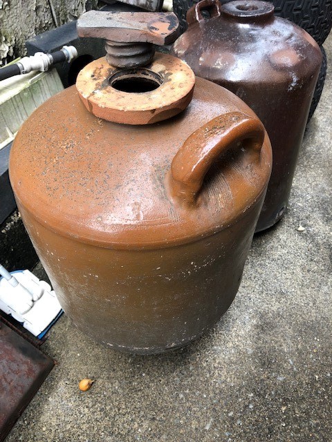 - かめ壺 焼酎がめ フタつき 昭和レトロ 腰掛 花台 園芸 オブジェ