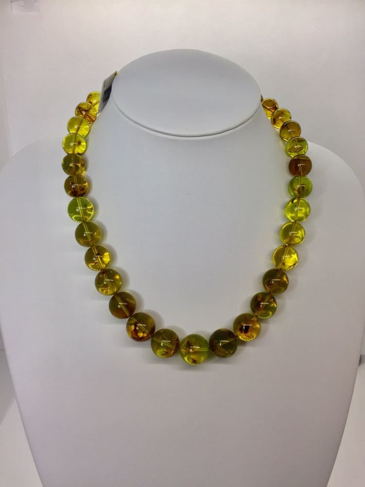 - 【新品】ほぼ全周虫入り琥珀ネックレス*リトアニア産コハクこはくアンバー/レア商品/シンプル一連/ラウンド*ほぼ全ての珠虫入り