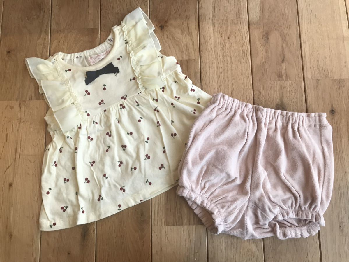 - 女の子 ベビー さくらんぼ ノースリーブトップス ユニクロ カボチャパンツ 80