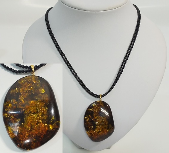 - 101★最終80%OFF 琥珀 天然石 ネックレス コニャックアンバー 不定型 K18 丸玉2連 48cm 展示品★AN2106