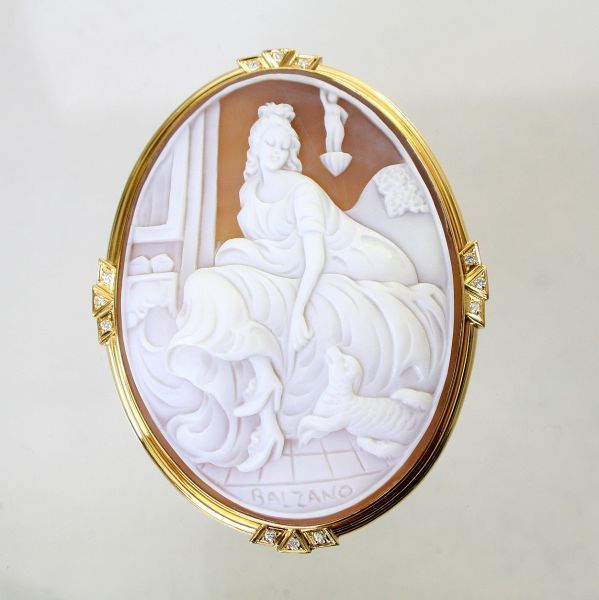 - ◎中古美品◎18金枠 ダイヤ 0.155ct シェルカメオ ブローチ&ペンダント