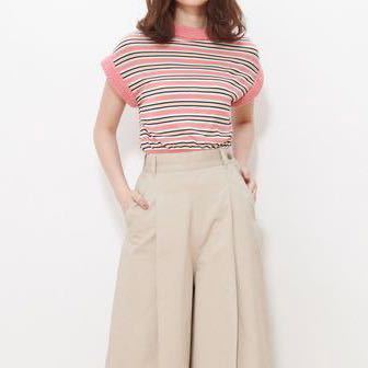 > ¥11550 即決 新品 SUPREME.LA.LA. コットンシルク フレンチ袖ニット ピンク ボーダー リボン 半袖 シュープリームララ クロップト丈