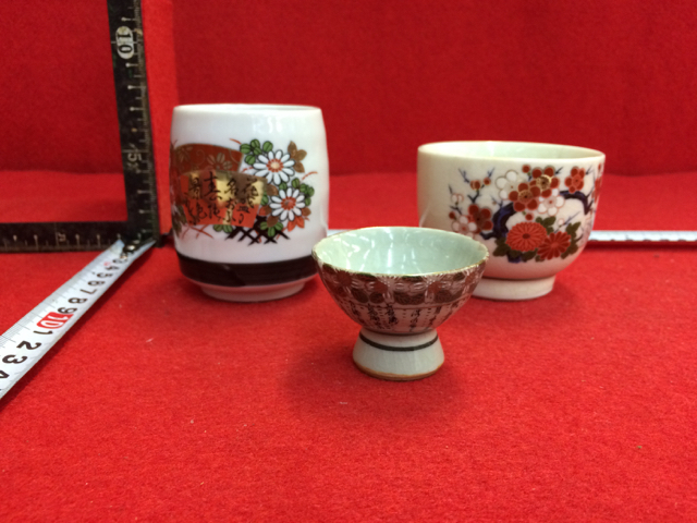 - 昭和レトロ_九谷焼 3点/湯呑み/猪口 _0146