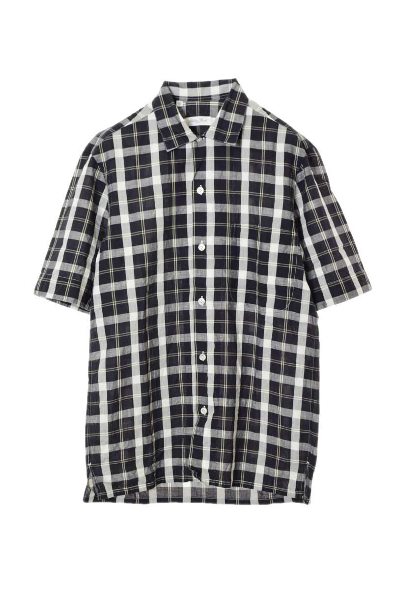 - 美品 Salvatore Piccolo チェック柄 コットンリネン オープンカラーシャツ 37 グレー サルバトーレピッコロ KL4CK3H18
