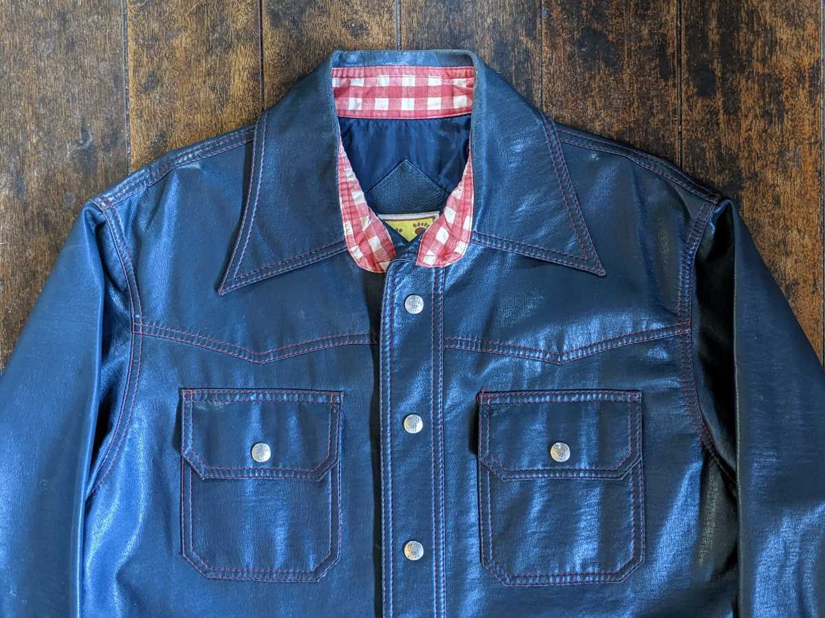 > レア ★ ハンテン ブルー ネイビー レザー コート ジャケット ビンテージ hangten ライトニングボルト オーシャンパシフィ オールド サーフ