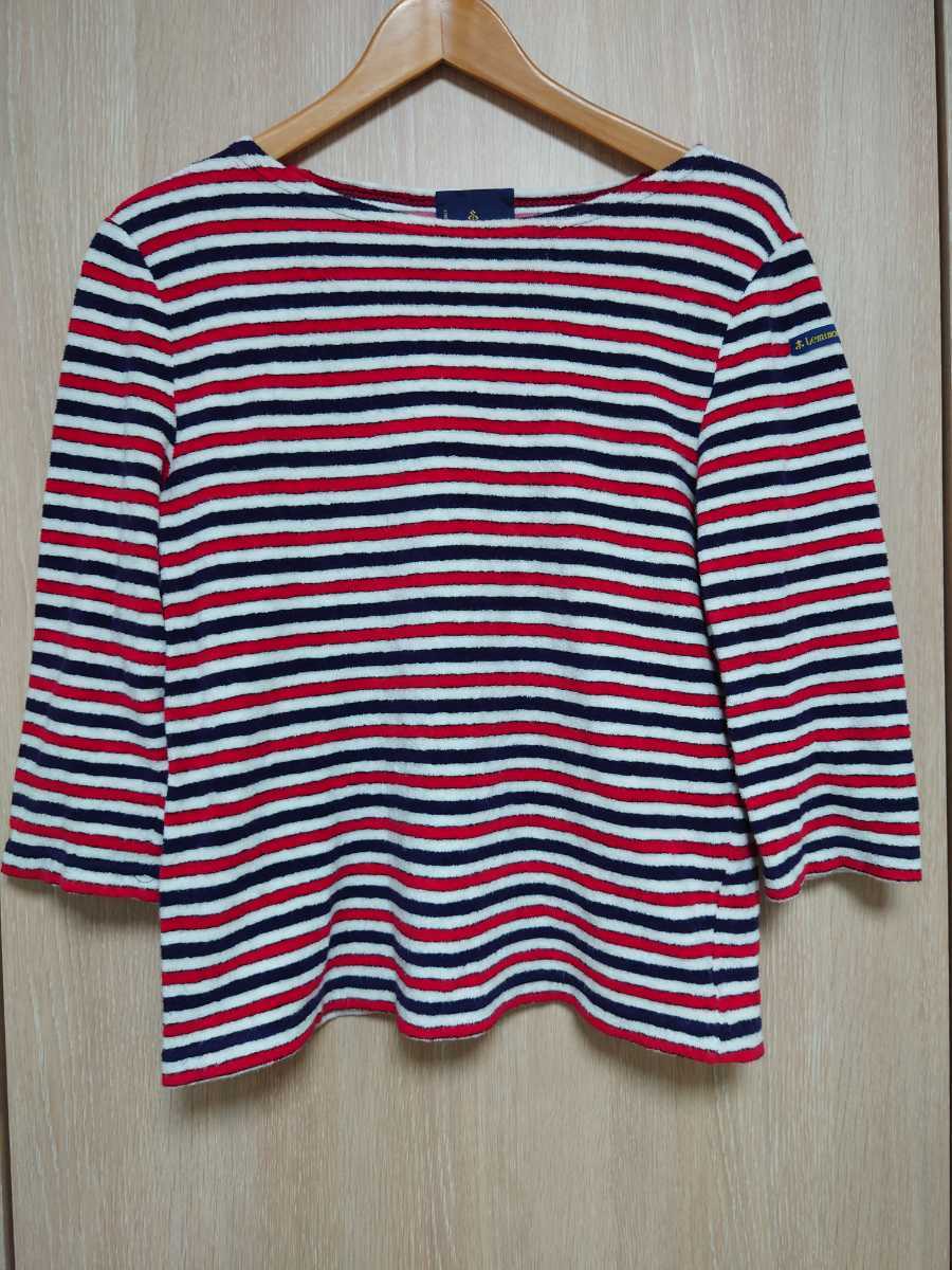 - ルミノア Le minor バスクシャツ ボートネック パイル地トリコロールボーダー 7部袖シャツ ユニセックス