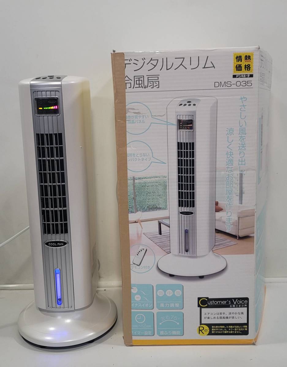 - □ドンキホーテ情熱価格 デジタルスリム冷風扇 マイナスイオン DMS-035-WS リモコン付