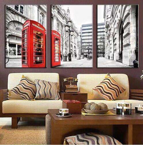 - 海外輸入パネルアート-LondonRedTelephoneBoxCanvasArt-