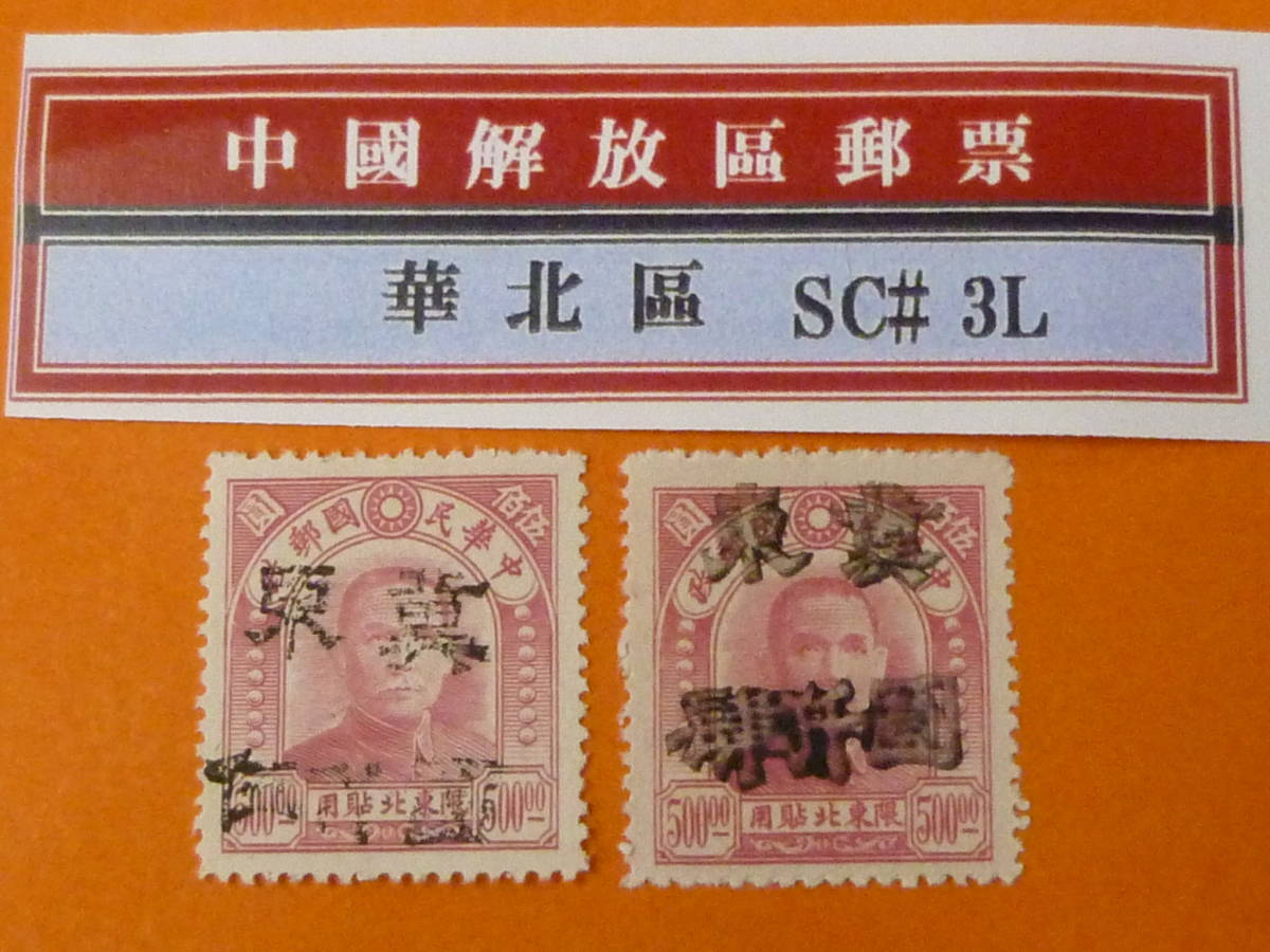 - 22SE A №81 中国解放区切手 華北区 1949年 NC#134 唐山第二次手蓋 冀東改値 2タイプ 未使用NH・VF