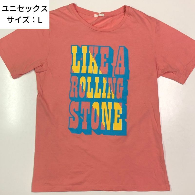 > GU Tシャツ Lサイズ LIKE A ROLLING STONE 夏物 夏服 夏フェス ロックTシャツ ローリングストーン ピンク 古着