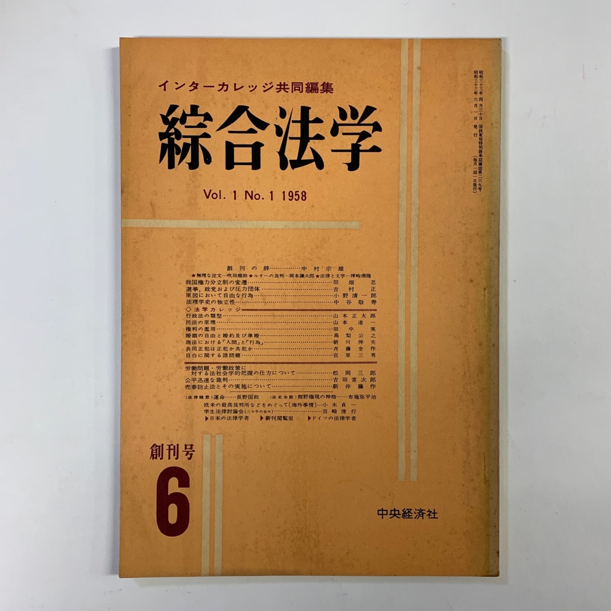 - インターカレッジ共同編集 綜合法学 創刊号 1958年6月 中央経済社 <ゆうメール>