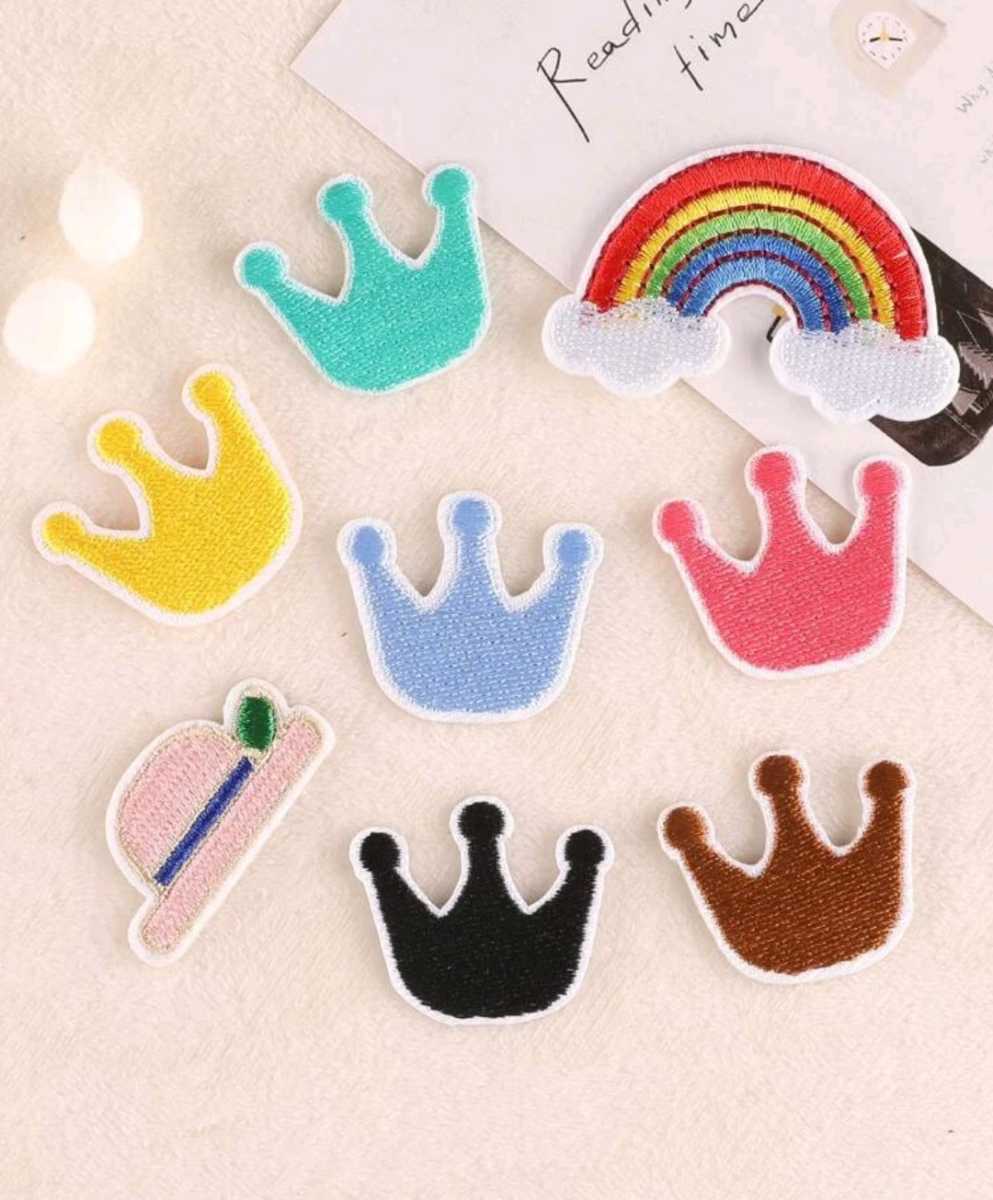 - 王冠&レインボー8種 ワッペン アップリケ 刺繍 クラウン 虹 ハンドメイド素材