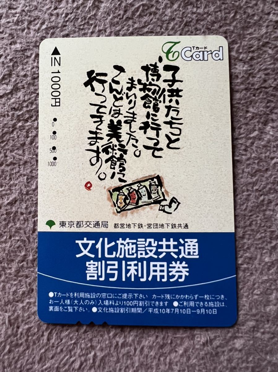 - Tカード 文化施設共通割引利用券デザイン 東京都交通局 使用済み