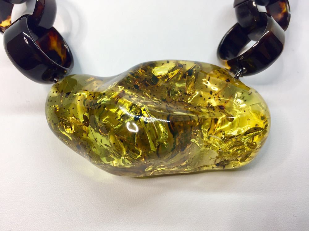 > 【新品】べっ甲×琥珀ネックレス*大振り*一点もの*国内最大級*ばらふ*ネジリ*天然こはくべっ甲*コパル*鑑別書付き*天然石