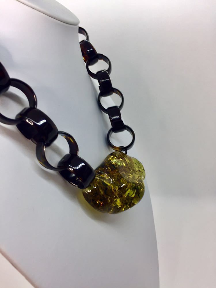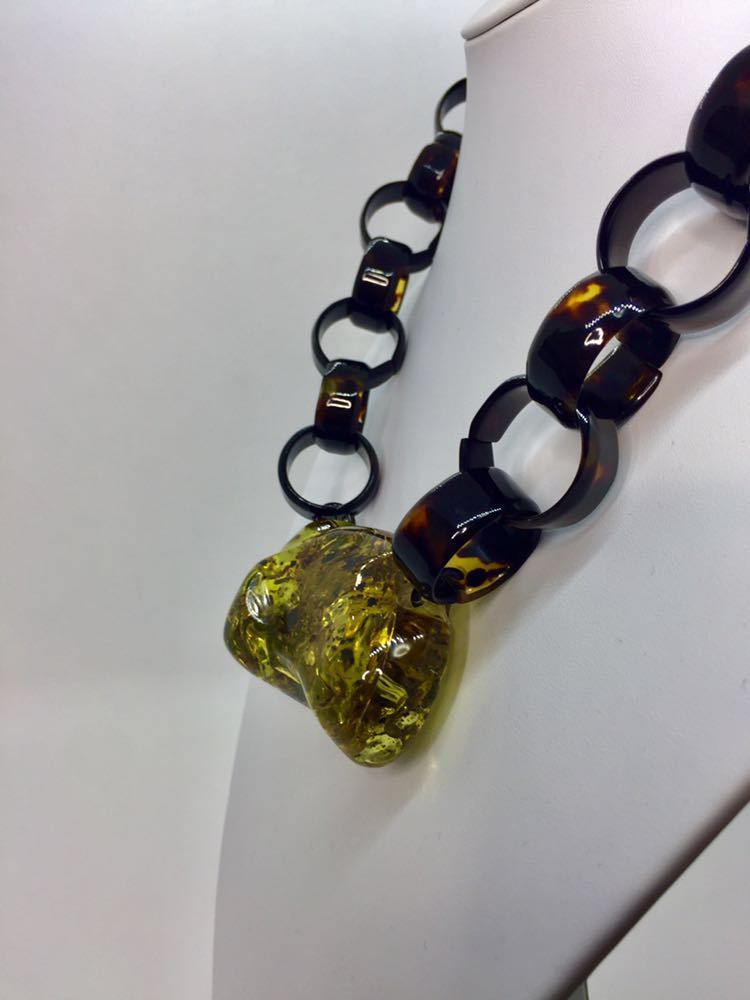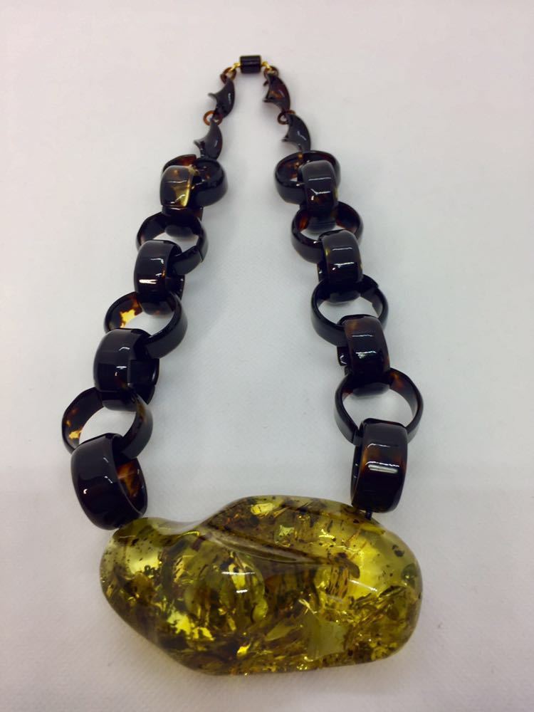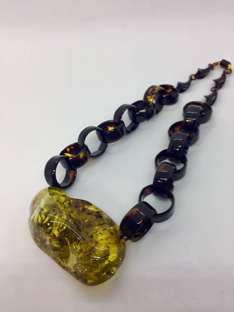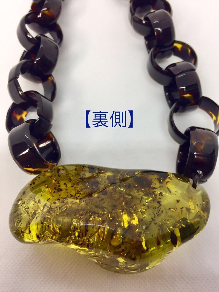 - 【新品】べっ甲×琥珀ネックレス*大振り*一点もの*国内最大級*ばらふ*ネジリ*天然こはくべっ甲*コパル*鑑別書付き*天然石