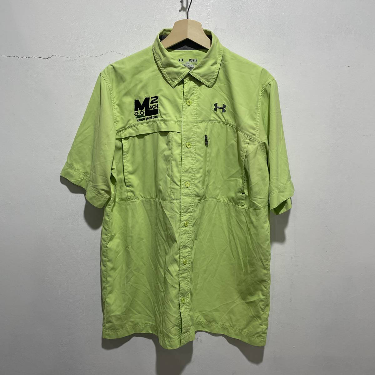 - ☆送料無料☆UNDER ARMOUR☆アンダーアーマー☆ヒートギア☆半袖ボタンダウンシャツ☆グリーン系☆e22c