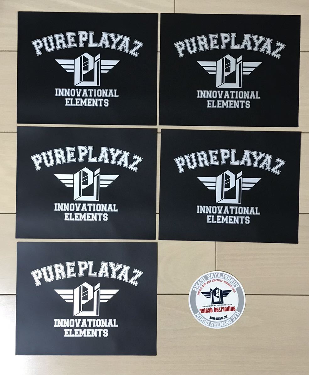 > PURE PLAYAZ ピュアプレイヤーズ ステッカー6枚セット ブラック角25×20cm5枚/内張ステッカー丸直径10.3cm