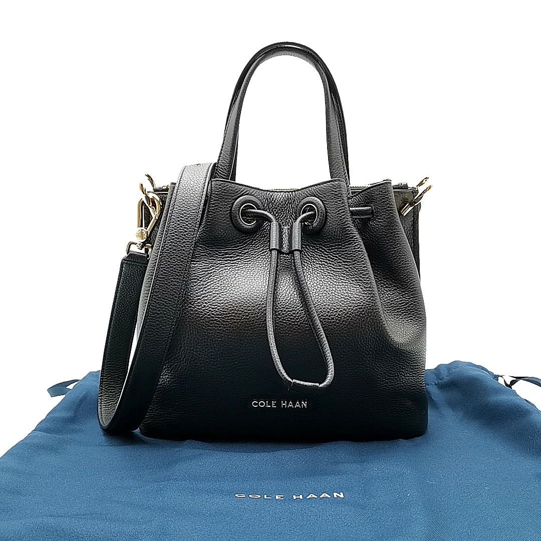 - 送料無料 超美品 コールハーン グランドシリーズ ハンドバッグ ショルダーバッグ バケットバッグ 鞄 U04437 巾着 レザー 黒系 レディース