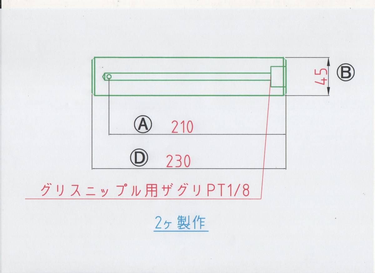 - NO 1219 Φ45用 長さ230mm グリス穴付きバケットピン ボルト穴なし 2本セット