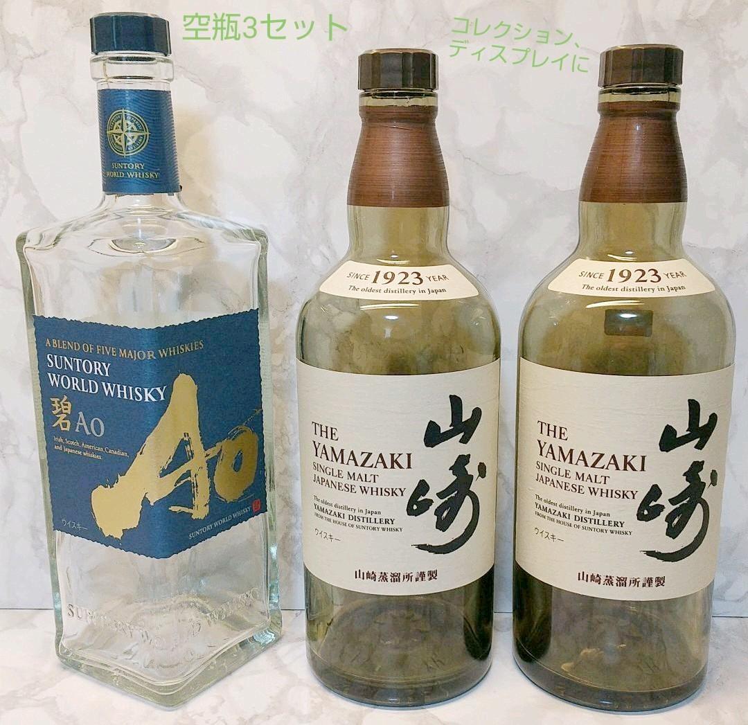 - 空き瓶 3本セット 山崎1923 碧 Ao コレクション、ディスプレイに
