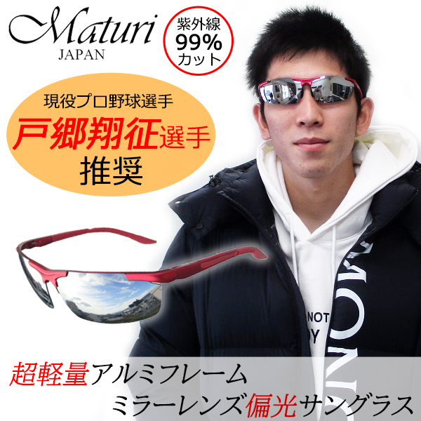 > 現役プロ野球選手 戸郷氏 推奨 Maturi マトゥーリ 偏光サングラス アルミフレーム ミラーレンズ バネ蝶番 ケース付き TK-014-1 定価19800円