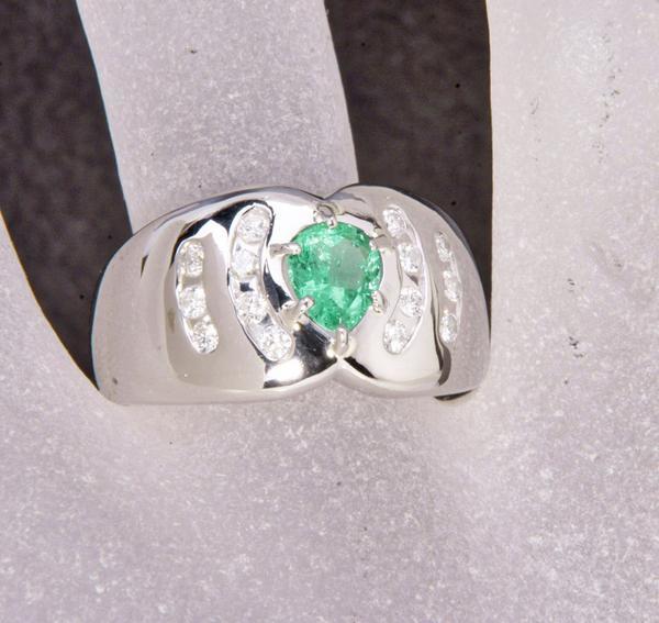 - 《質屋出品》Pt900★天然エメラルド0.47ctデザインリング★k-3328
