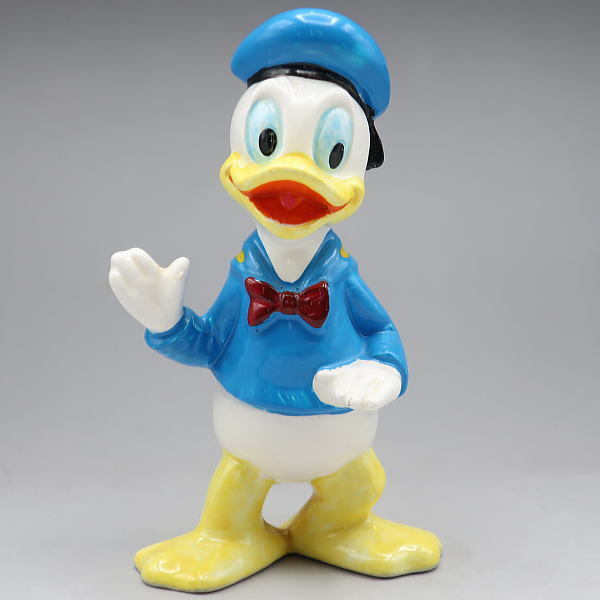- ディズニー ドナルド 陶器フィギュア 右手を上げるて左手お腹 エネスコ社 1990年代