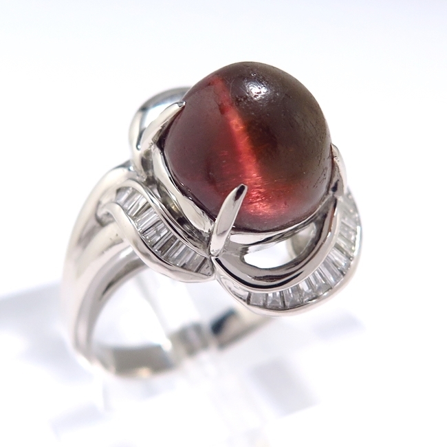 - Pt900 プラチナ リング 指輪 トルマリンキャッツアイ5.870ct ダイヤモンド0.270ct 13号 おしゃれ ソーティング付【中古】/10024710