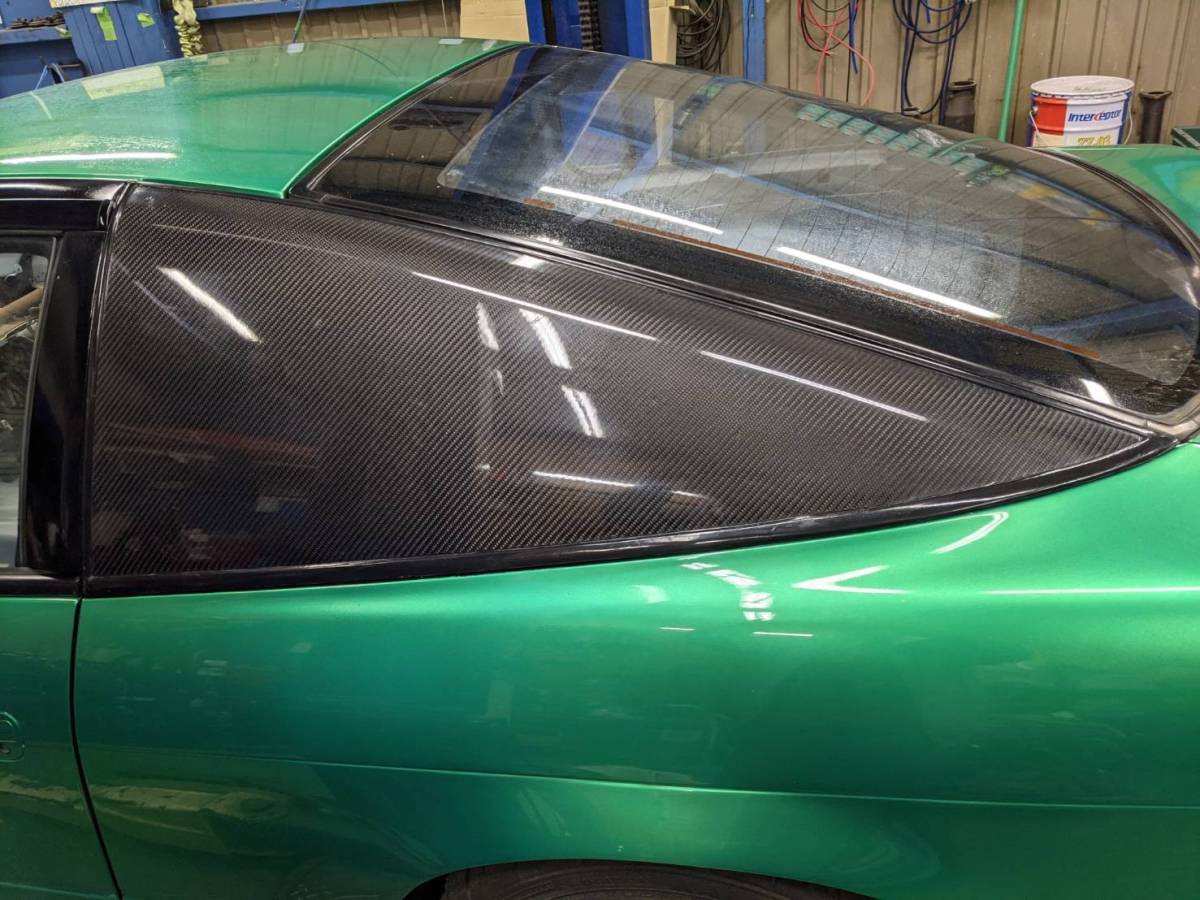 - ★スーパーメイド☆180SX用リアクウォーターガラス純正タイプカーボン製三角窓☆