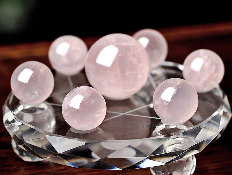 - 七星陣 ローズクォーツ 天然石 置物インテリア 幸運 ラッキー 原石 魔除 お守 恋愛運 クリスタル 開運 運気UP スフィア 丸玉 風水晶