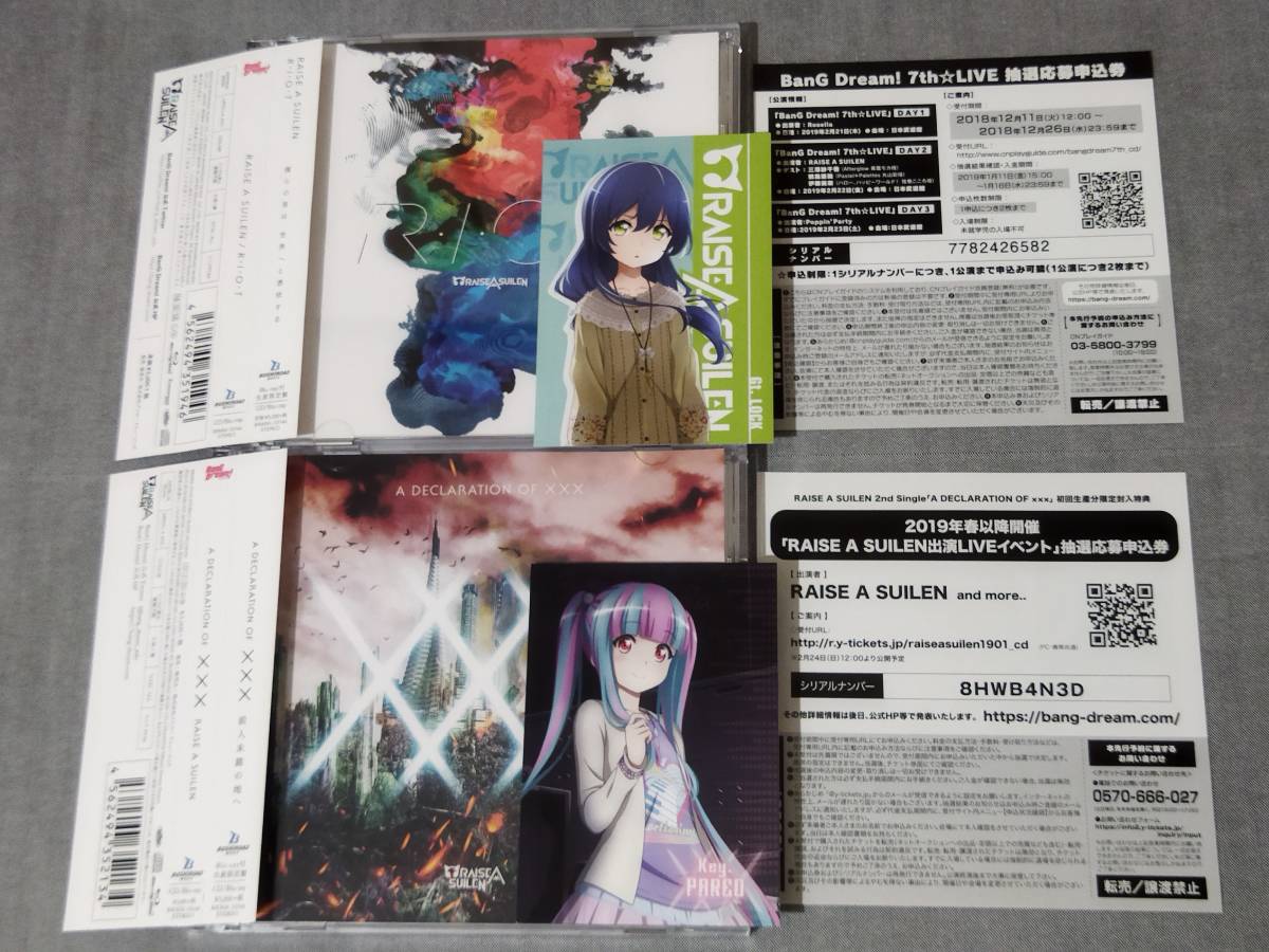 - 2619a 即決 中古CD2枚 【Blu-ray付生産限定盤/カード付】 RAISE A SUILEN/『R・I・O・T』 + 『A DECLARATION OF ×××』 XXX バンドリ!