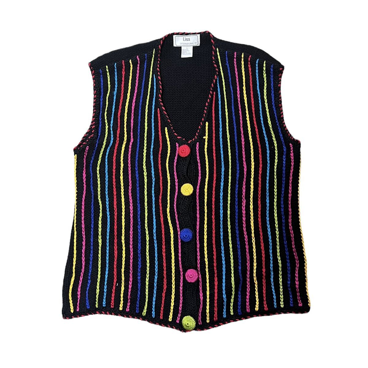- 【1990s】ビンテージ ハンド刺繍 ニットベスト カラフルデザイン 古着 ノースリーブ カーディガン 古着 ステッチ 刺し子