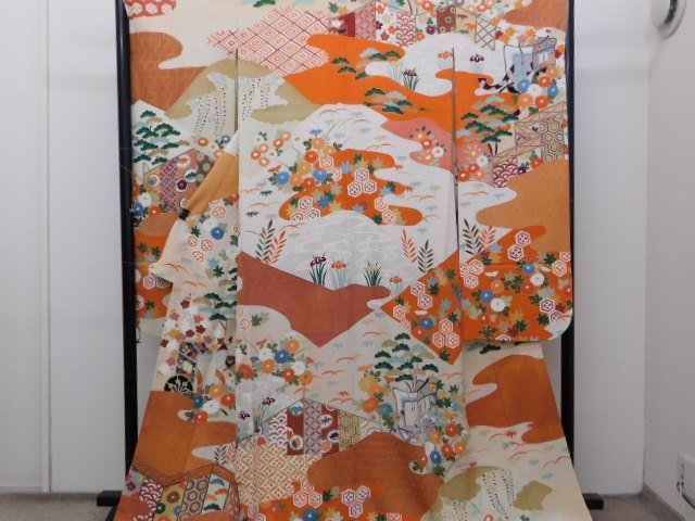 - 〔楽布特選〕P18558 見事な手描き友禅振袖袷 k