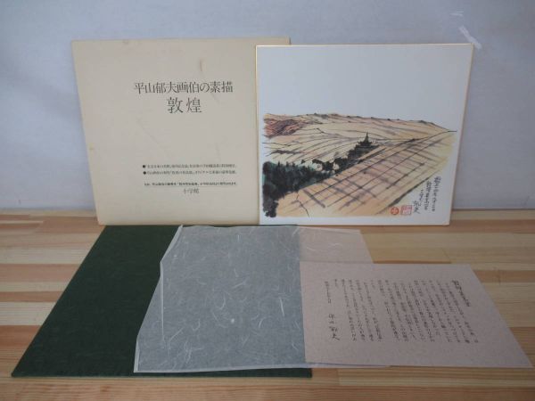 > A34●平山郁夫画伯の素描 デッサン「敦煌莫高窟」 色紙 特別贈呈品★小学館 昭和55年記念品 美術品 220323