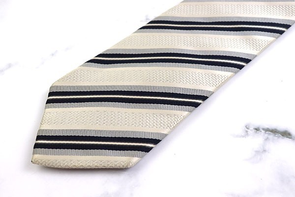 - 498円~タケオキクチ ストライプ柄 日本製 ブランド ネクタイ メンズ ホワイト ブラック 良品