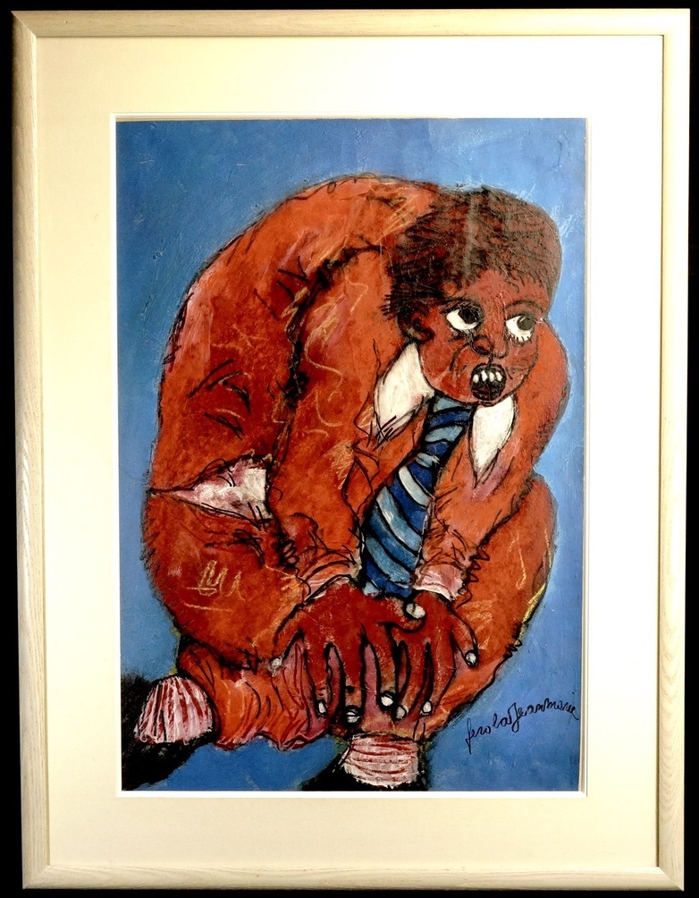 - 1991年 イタリアアーティスト Jean-Marie Gerola作 油彩 人物画 抽象画 15号サイズ 額装品 絵画 アート 幅64.5㎝ 高さ84.5㎝ YKT