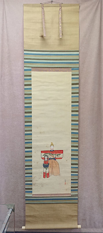 - 【アンティーク掛軸】①立雛の図*松齋 作《木箱入り》作家物*レトロ