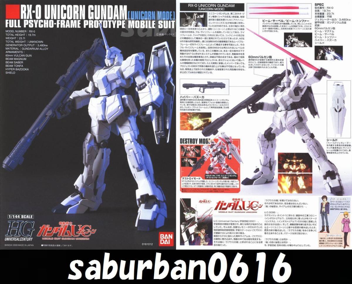 > G0209説明書 1/144 HGUC 1号機 ユニコーン ガンダム ユニコーン モード HG UCガンダム RX-0 連邦軍MS 試作機 指揮官機 ガンプラ バンダイ