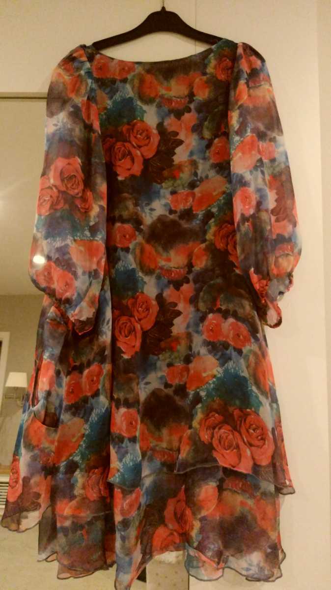 - ピンクブルー花柄チュニックワンピース Mサイズ