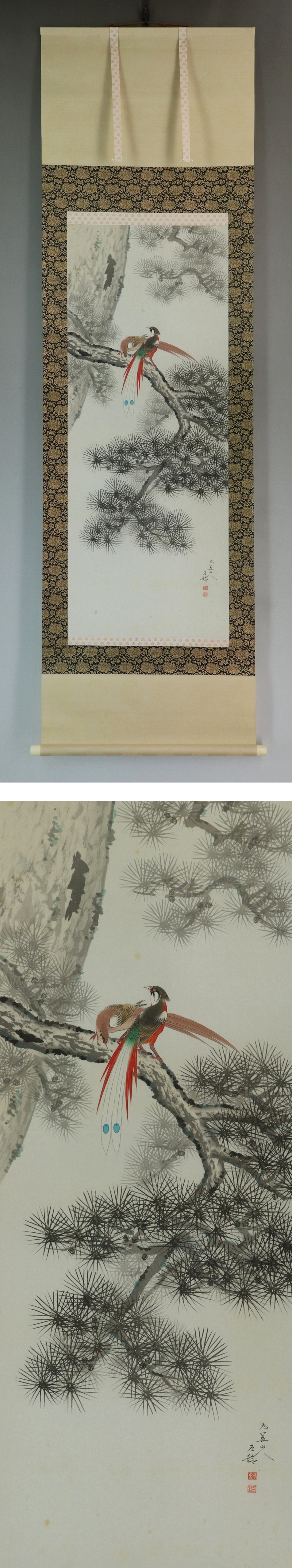 - 名品【真作】分部五鈴【老松寿鳥図】◆絹本◆共箱◆掛軸 u05176