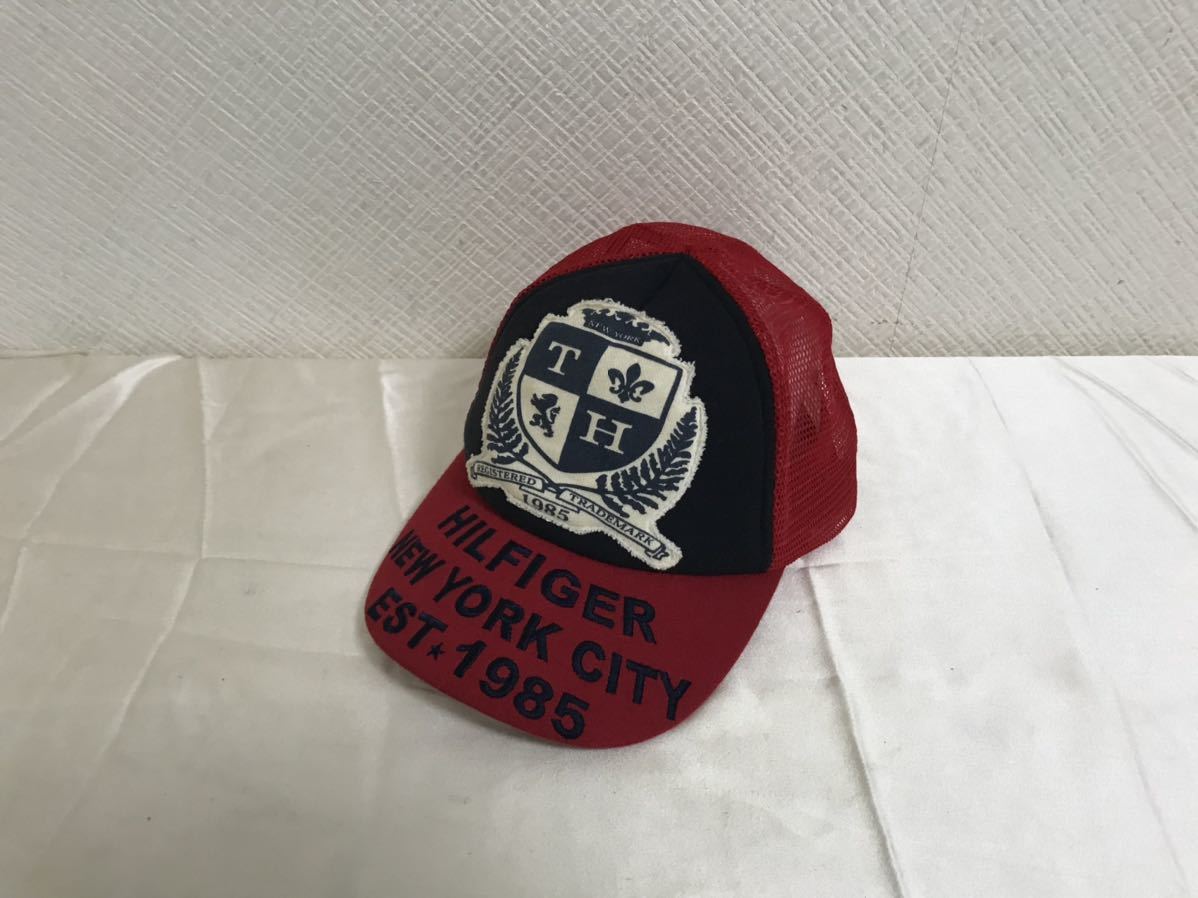 > 本物トミーヒルフィガーTOMMYHILFIGERコットンナイロンメッシュキャップ帽子ぼうしボウ赤紺レッドメンズレディースM