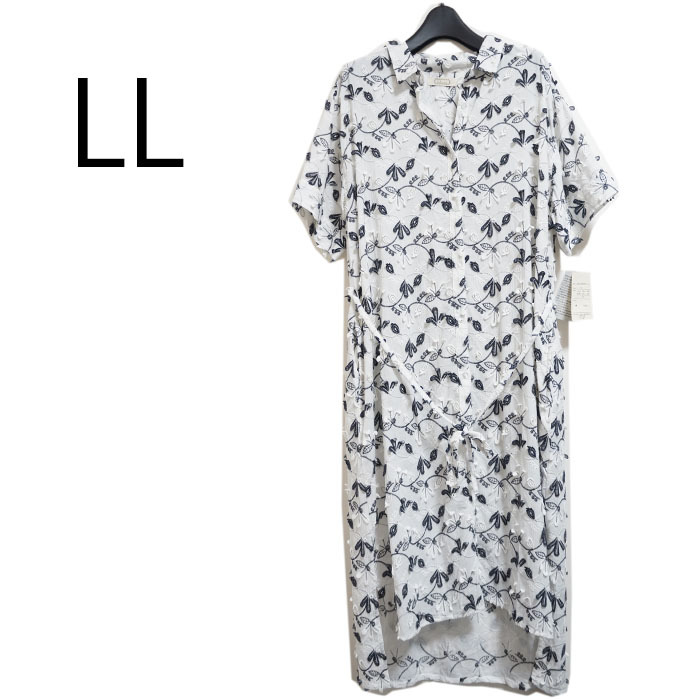 - ●新品/ワンピース/シャツワンピース/綿/オフ白系/花モチーフ/刺繍/LL●f8909