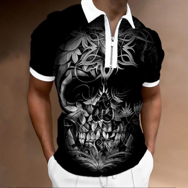 - 半袖 ポロシャツ 【 M 】 polo14 薄手 スカル ドクロ カラフル メンズ ハーフジップ ゴルフウェア トップス スポーツ アウトドア