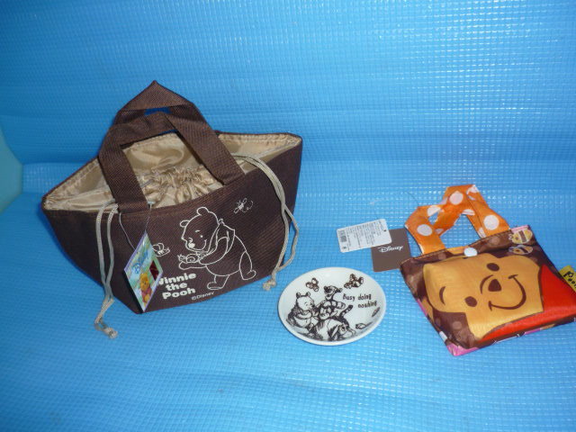 - a★未使用★Disney くまのプーさん アルミ蒸着ランチバックと折りたたみ ショッピングバッグ他3点