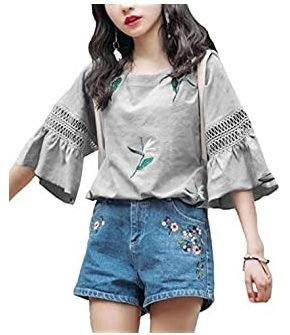 - 新品未使用送料無料[サン ブローゼ] ブラウス シャツ フレアスリーブ 七分袖 パーティー トップス スリーブ レディース グレー L