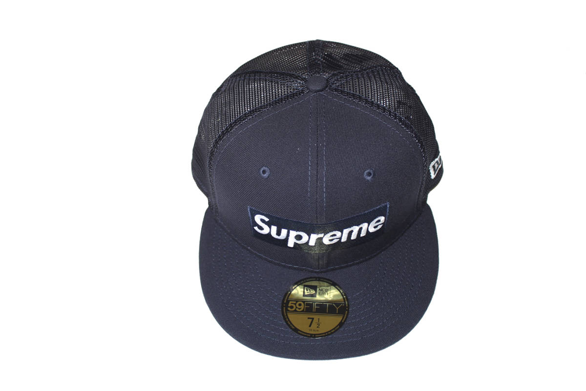 - SUPREME BOX LOGO MESH NEW ERA NAVY SIZE 7 1/2
