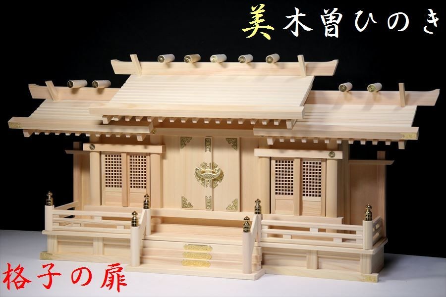 - 美・木曽ひのき■屋根違い三社 格子の扉■大型 横幅87cm■ 神棚