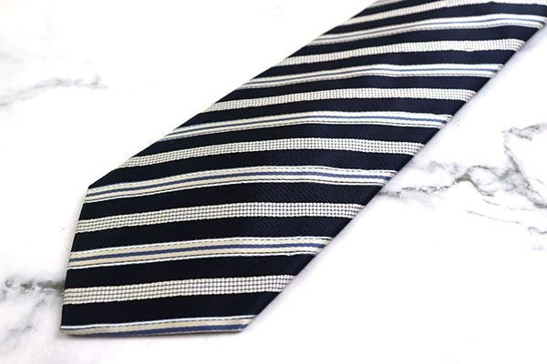 - 498円~ヴィサルノ ストライプ柄 ブランド ネクタイ メンズ ネイビー ホワイト 良品