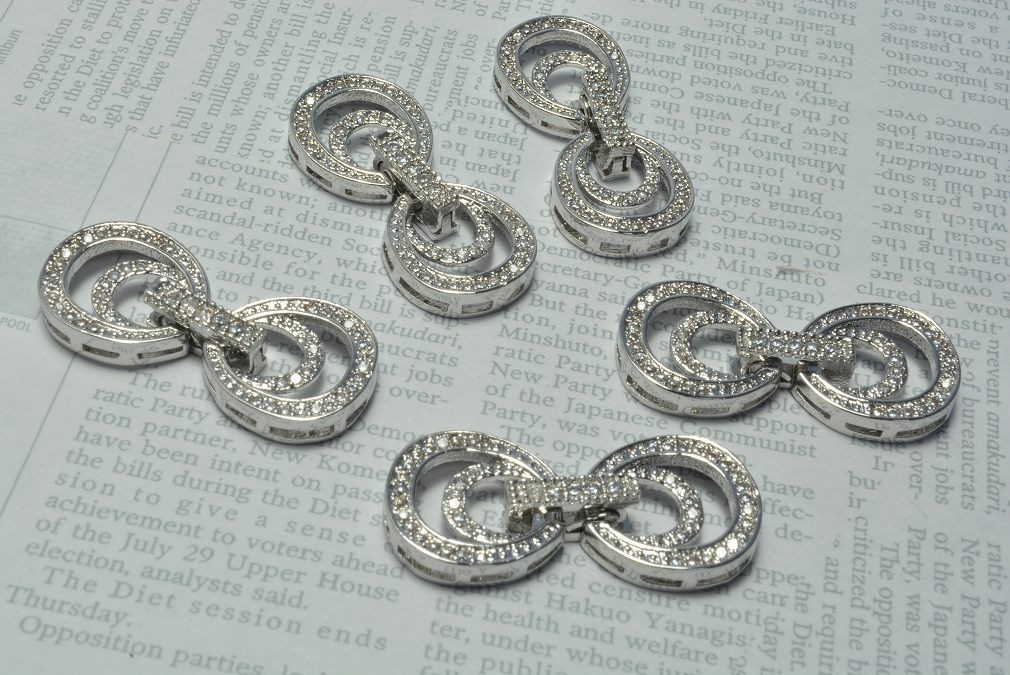 - ラインストーン クラスプ ダブルサークル シルバー 1個 30mm 留め金 ネックレス ブレスレット メタルパーツ ビーズクラブ